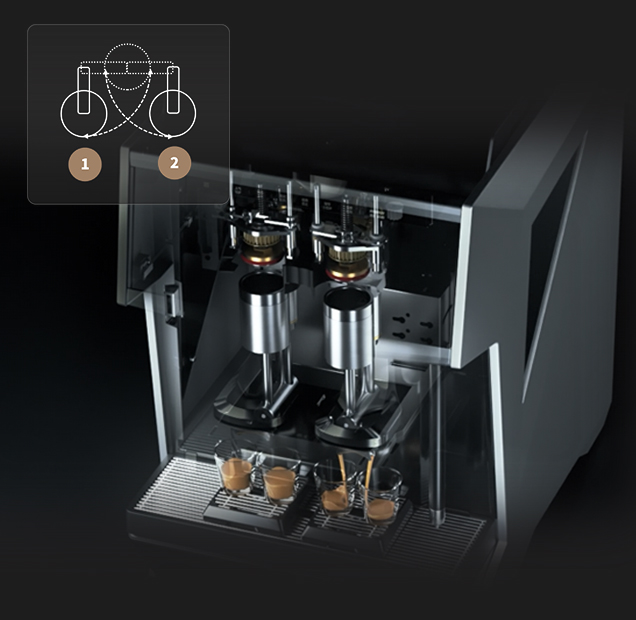 Our cutting-edge Vertical Vibrating Distribution (VVD) system parallels the barista's technique of tapping the portafilter, utilizing vertical vibrations to level the coffee bed again, thus prevent channeling and guaranteeing stable extraction quality.