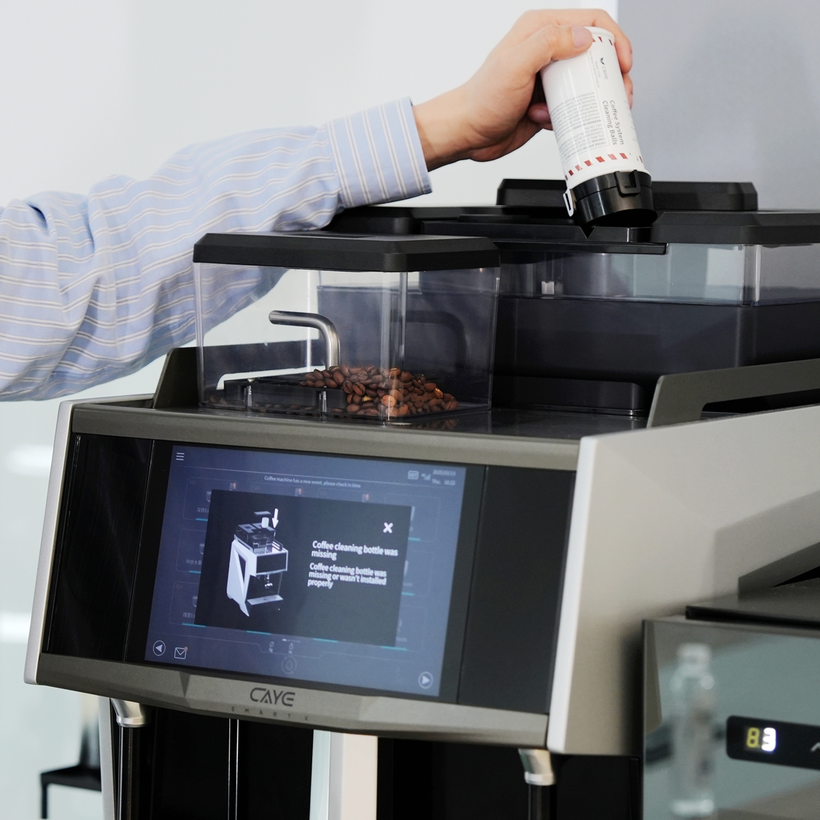 Smart and easy cleaning with cleaning balls auto dispenser. Simply refill the cleaning balls periodically, and the system will auto-dose and clean the brewer and coffee pipelines with one touch.