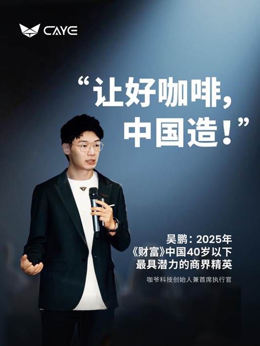 此次吴鹏入选《财富》“中国 40 岁以下最具潜力商界精英” 榜单,正是咖爷科技在咖啡机行业创新发展的一个缩影。既象征着国产品牌在高端制造业领域,正凭借自主创新与高效运营,逐步打破欧美品牌的垄断,重塑行业格局。
